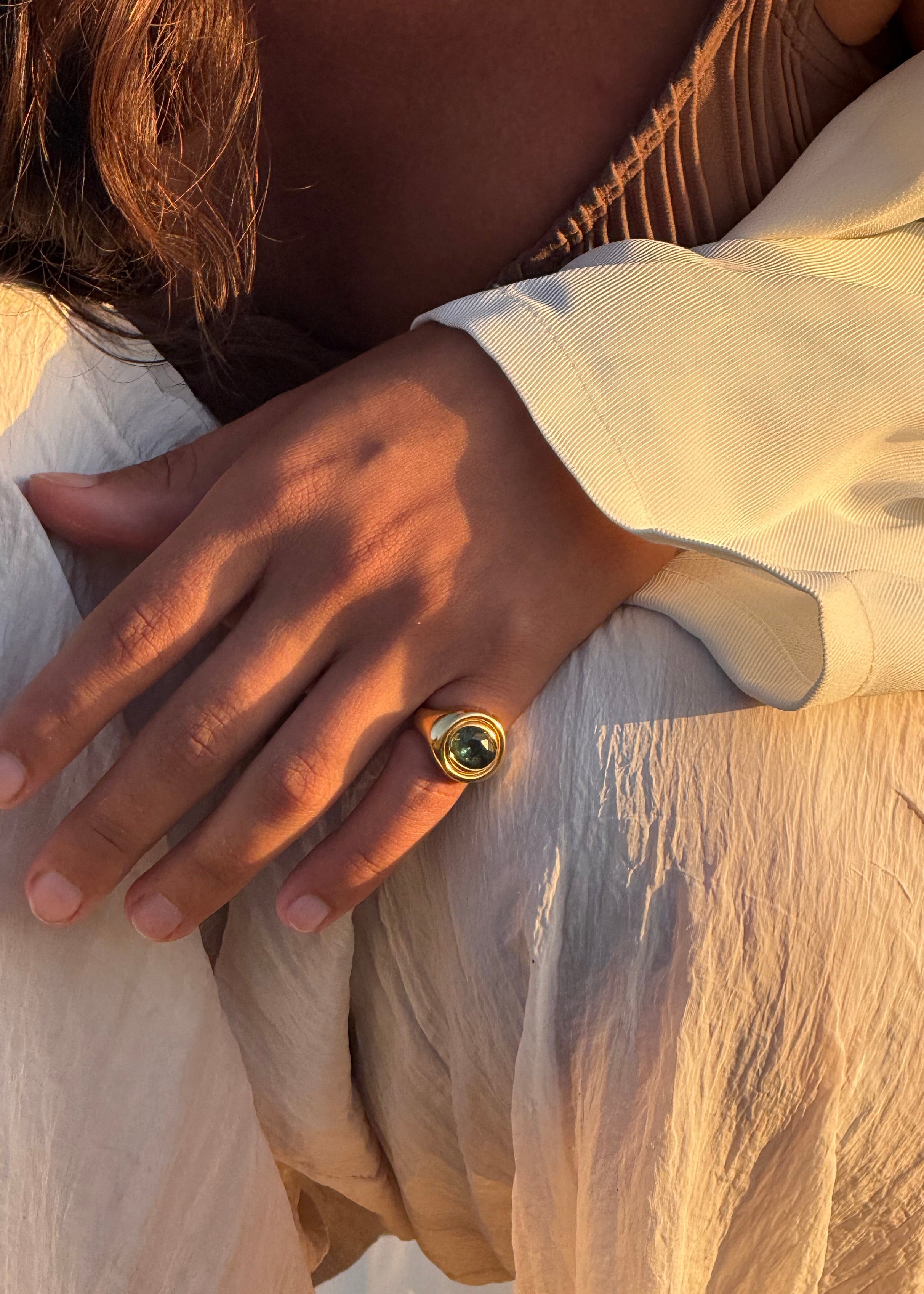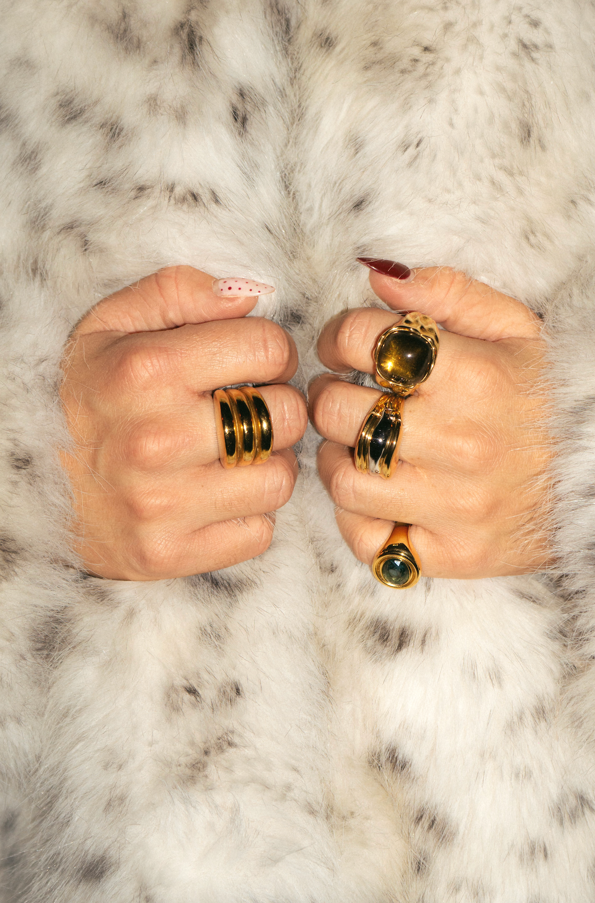 The Siza is a sculptural ring designed with organic Mediterranean-inspired forms. Crafted in 18k gold PVD, it is designed for everyday wear and effortless styling. Wear it alone as a statement or layer it with other Olive Club pieces for a modern, elevated look.