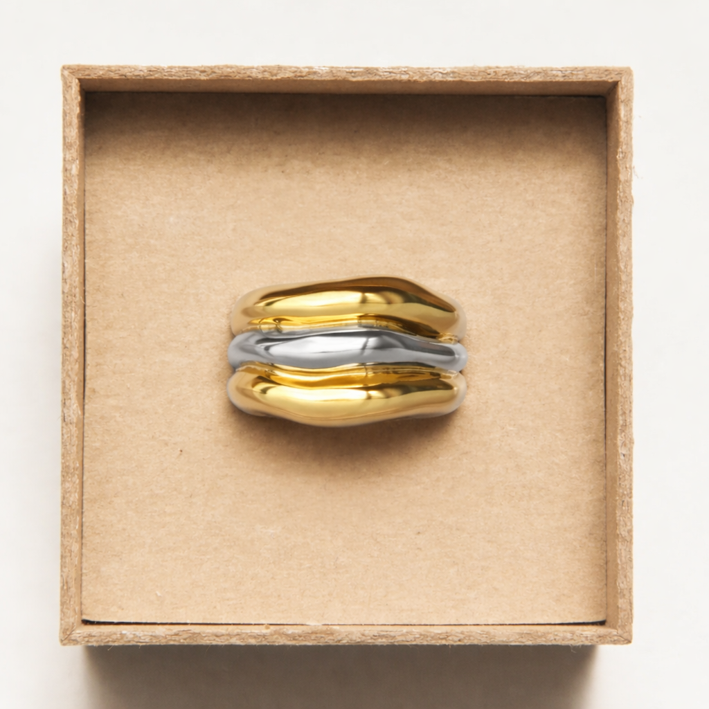 The Gaudi ring is a sculptural mix-metal ring inspired by organic Mediterranean forms. Designed for everyday wear, it pairs effortlessly with minimal outfits or layered jewelry looks