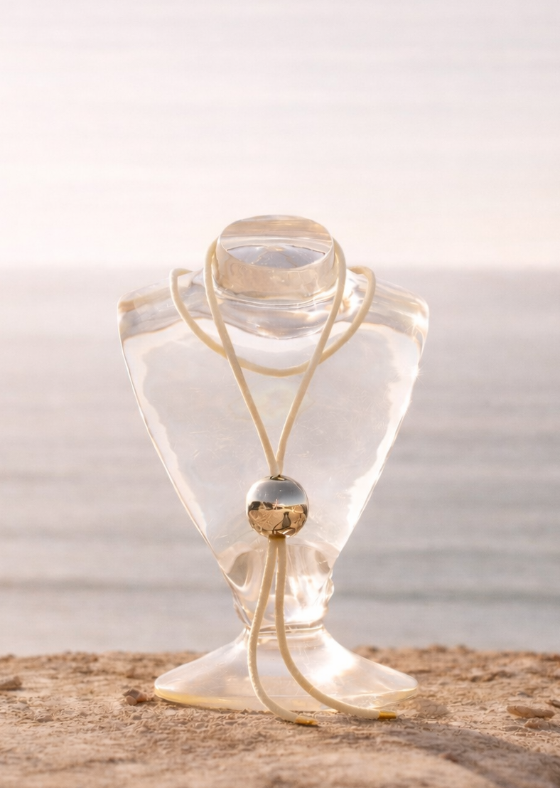The Olivia Necklace is a statement in effortless elegance. Designed with creamy leather cords and sculptural metal spheres in silver, it plays with contrast, balance, and movement. Adjustable and versatile, Olivia can be worn long and minimal or styled higher for a bolder look, adapting seamlessly from day to night.