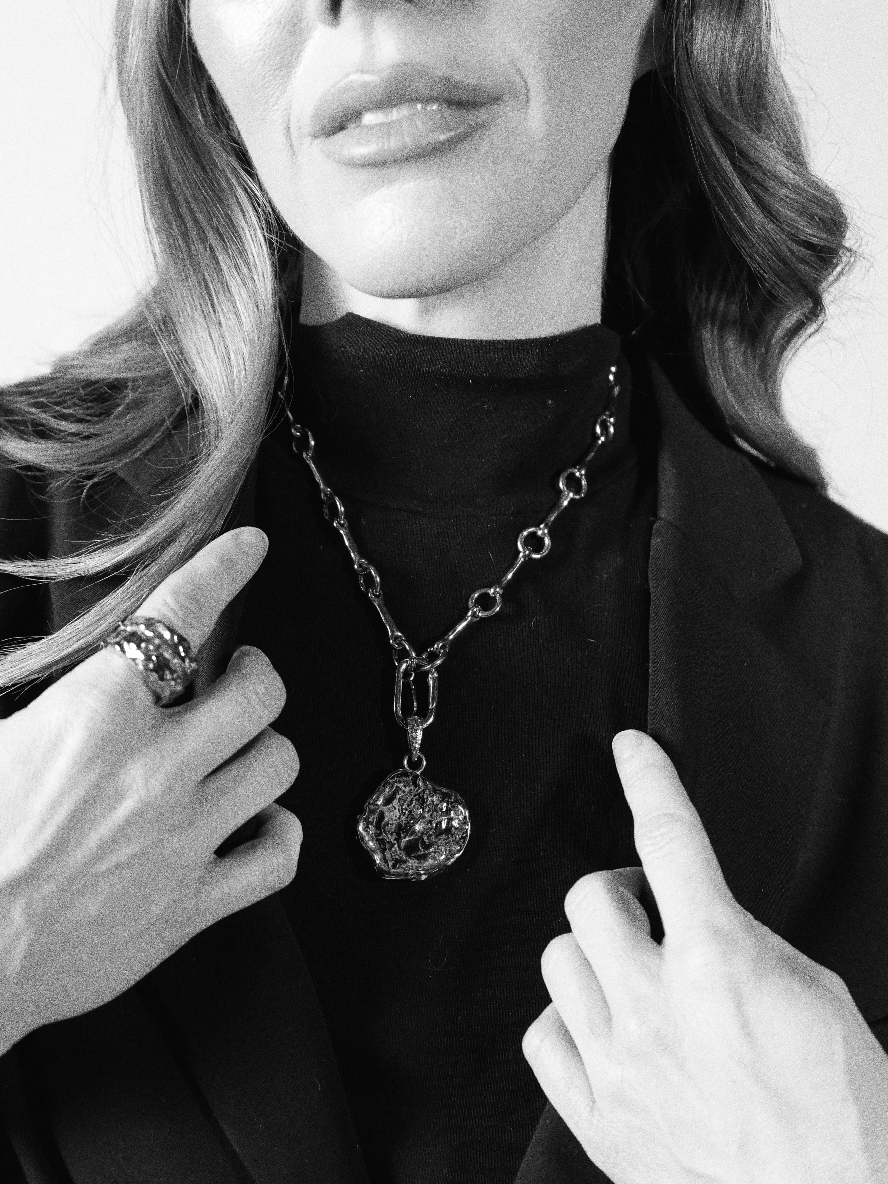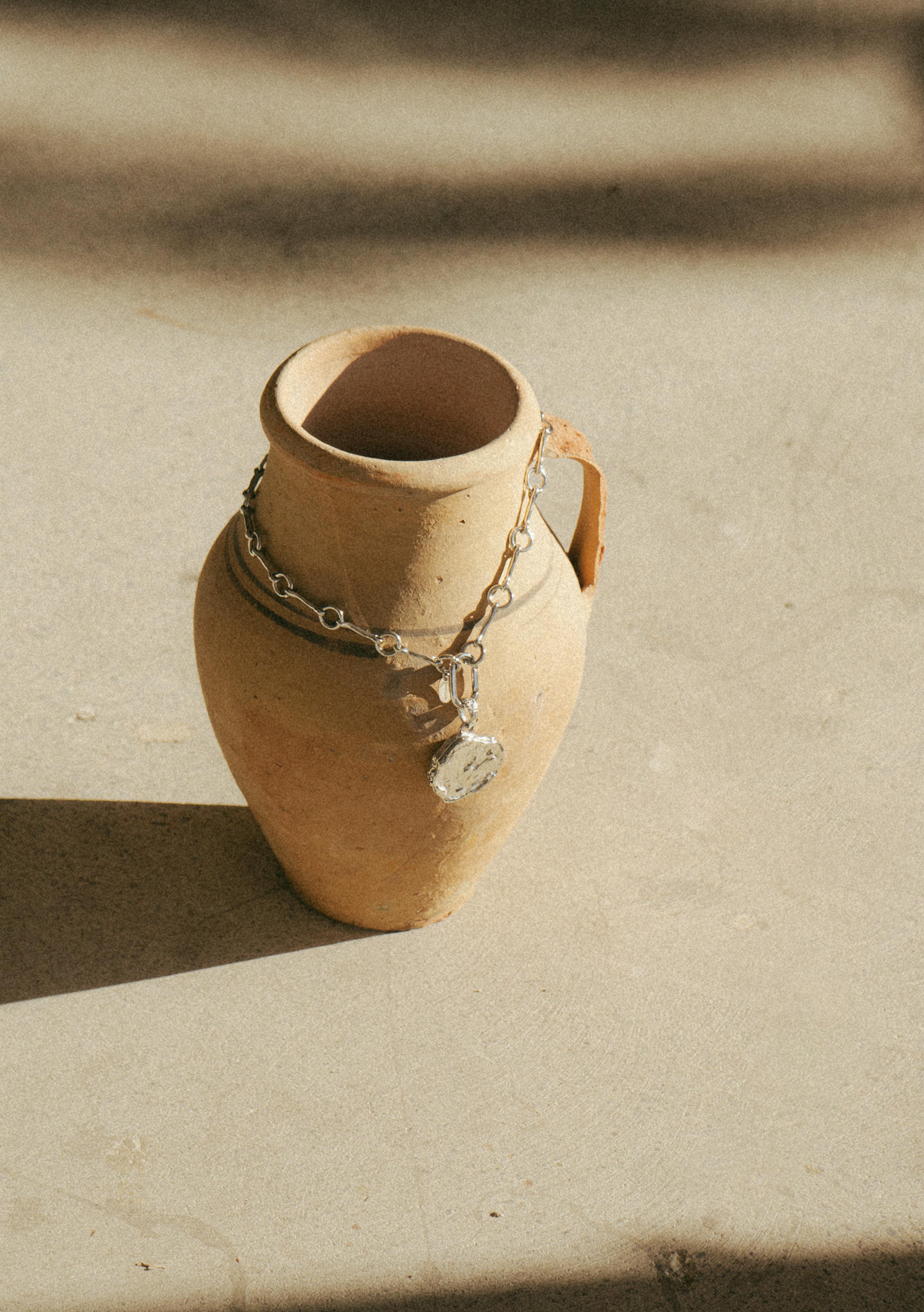 A bold yet effortless statement, the Zahara necklace features a chunky gold chain paired with an organic-shaped gold coin. Inspired by the sunlit shores of Spain, its fluid form captures the beauty of natural imperfections. Timeless, radiant, and designed to stand out.
